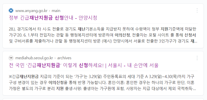일단 네이버에서 치면 5차 재난지원금 이의신청하는 사이트를 찾기가 무척이나 어렵다. 일부러 그런거니?