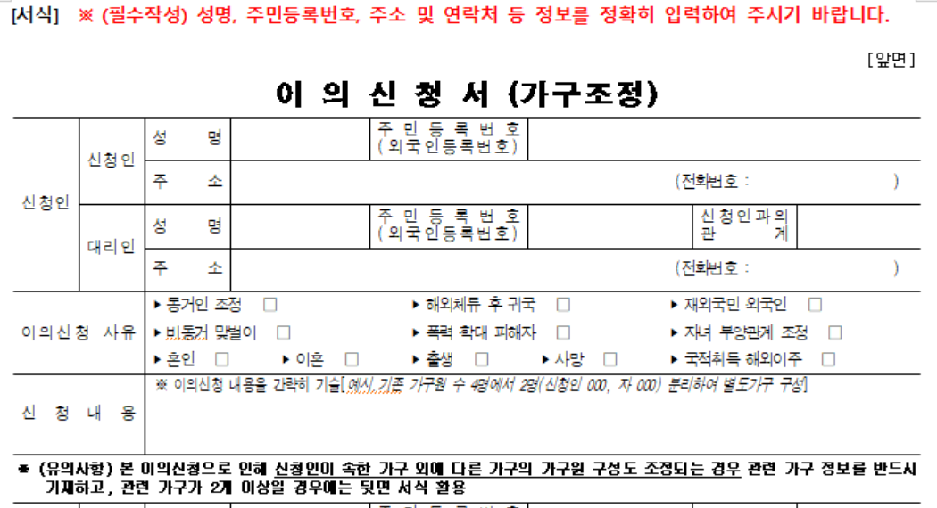 무조건 이의신청 양식(.hwp)을 다운받아서 작성해애만 한다. 5차 재난지원금 이의신청 양식에는 보다 더 자세한 내용들이 포함되어 있다.