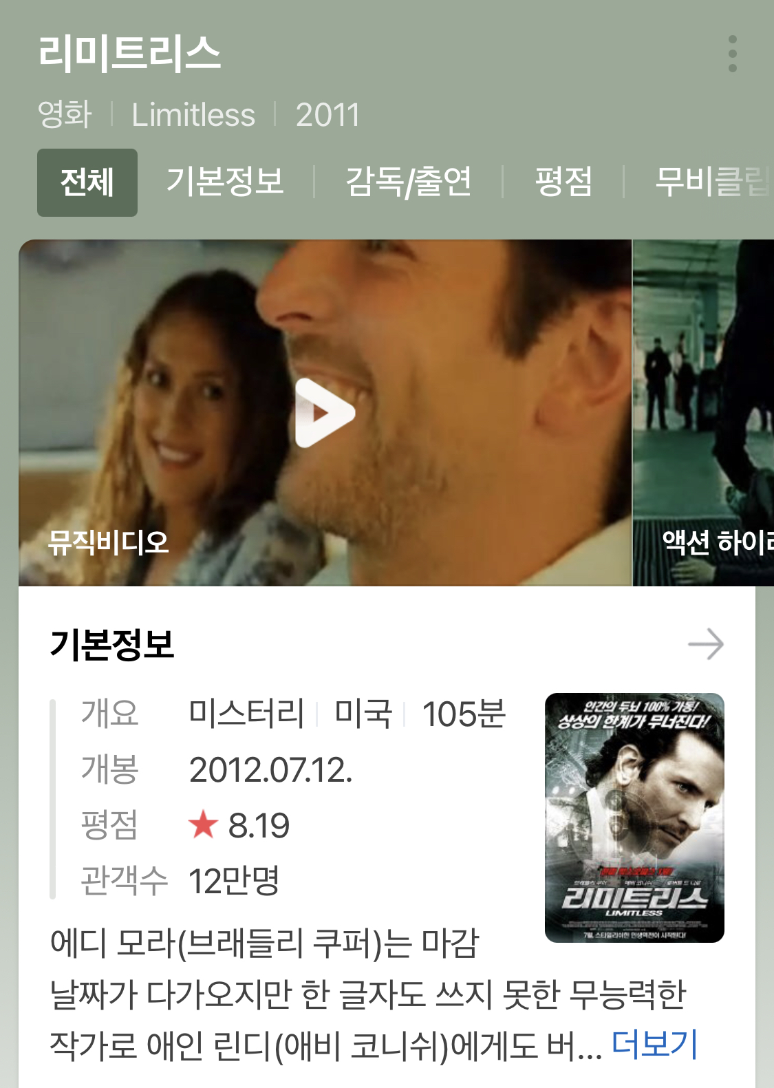 지금부터는 영화 리미트리스 스포도 포함되어 있으니