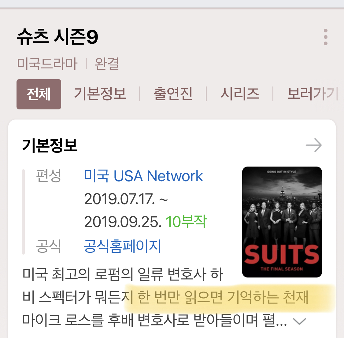 와 근데 슈츠 시즌9까지 나오고 완결되었구나