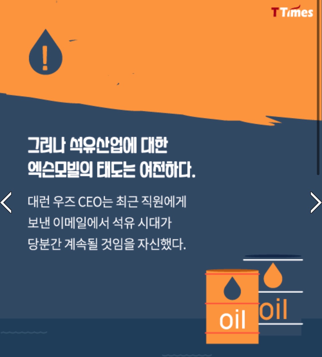 Ttimes라는 저널을 살펴보면 엑슨모빌은 아직 현실을 제대로 직시 못하는 느낌도 든다.