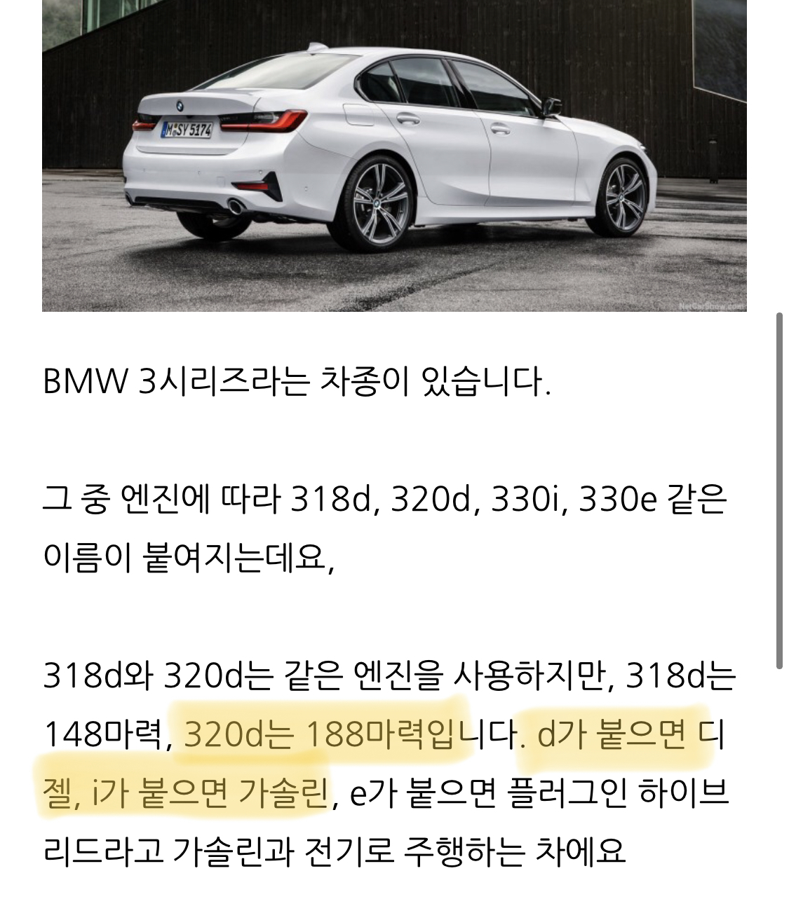 일단 먼저 BMW 320d, i 차이점이 궁금했다.