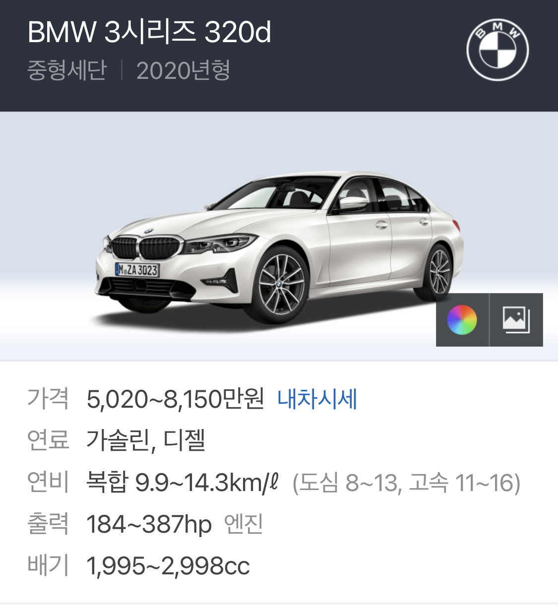BMW 320 d,i 차량 가격의 경우는