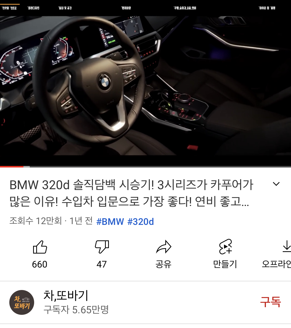 하지만 BMW 320d에 대해서 검색만으로는 한계가 있어서 유튜브 좀 찾아보았는데
