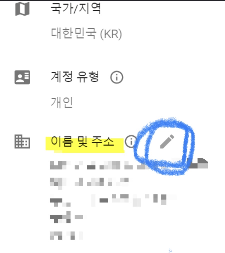 그리고 이름 및 주소 옆에 연필 클릭.