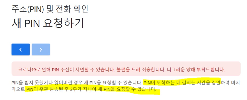 pin 우편 발송된 후 3주나 지나야 가능하단다…