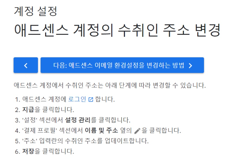 애드센스 주소변경 방법은