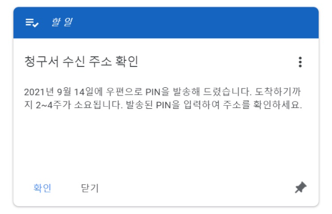 구글 애드센스는 수익 지급을 위해 주소인증(pin번호 입력)이 필수 요건이다.