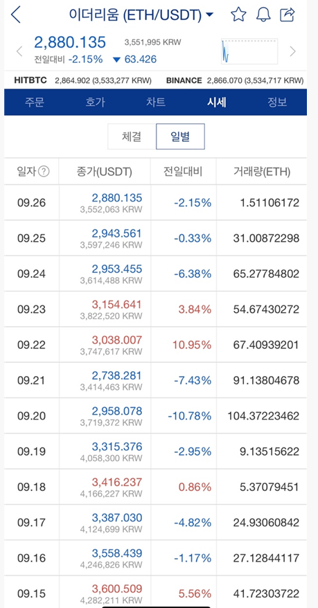 수치로 이더리움 시세를 정리해보면 아래와 같다.