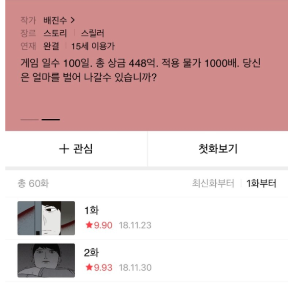 약간 배진수 웹툰 머니게임, 파이게임 같은 느낌도