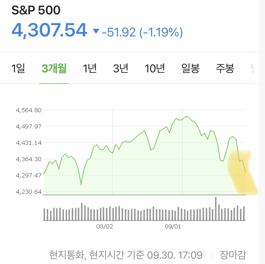 요즈음 미국 s&p500 주가가 많이 떨어졌다.
