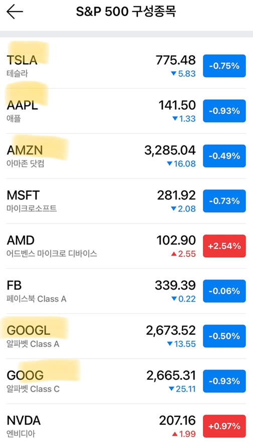 s&p500 종목들 보면 고가의 종목들이 많은데