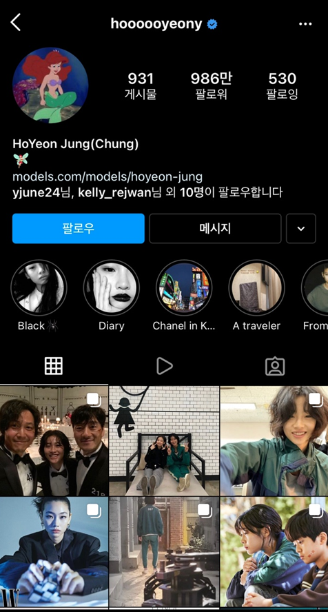 그나저나 정호연 인스타 첫 화면에 저런 큰 스포를 하면 어쩌나 ㅋㅋ