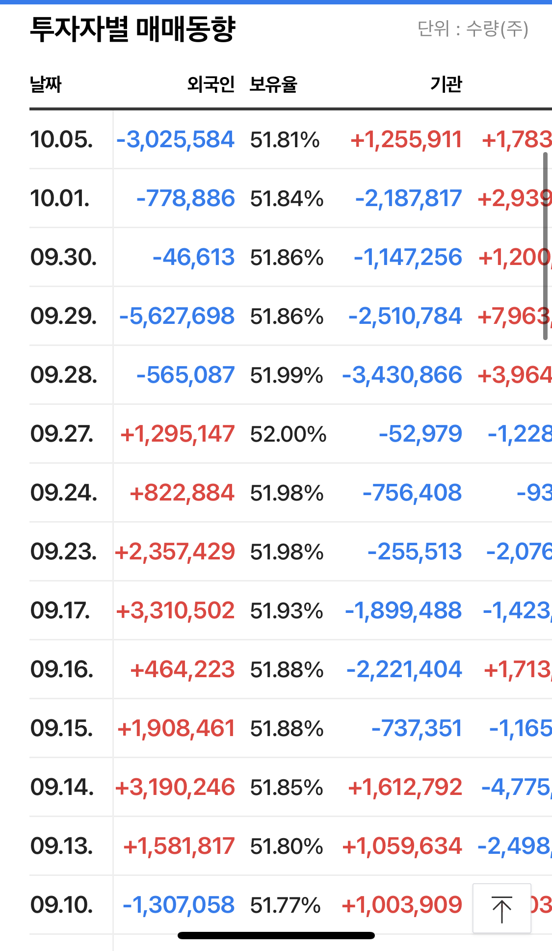 9/27까지 외인들 엄청 사들이다가 줄 곳 매도 중