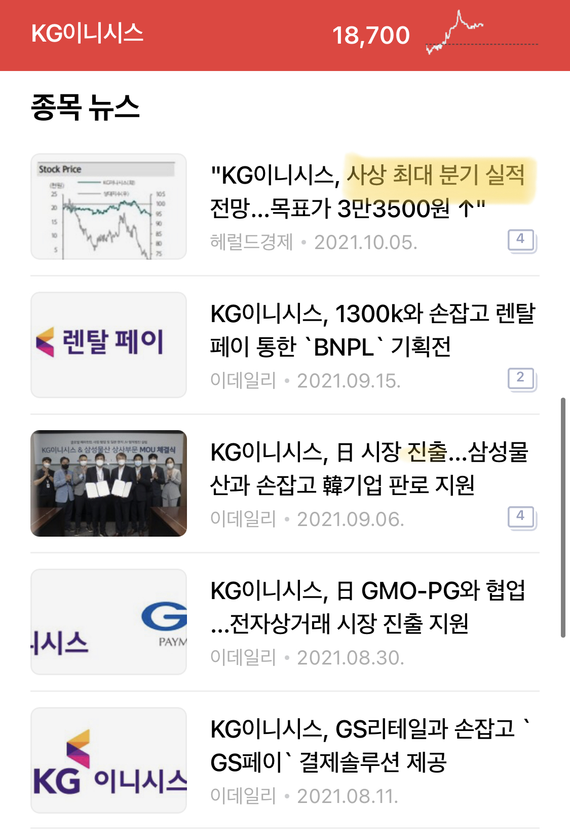 그럼 이제 kg이니시스 주가 관련 최신 기사를 볼까?