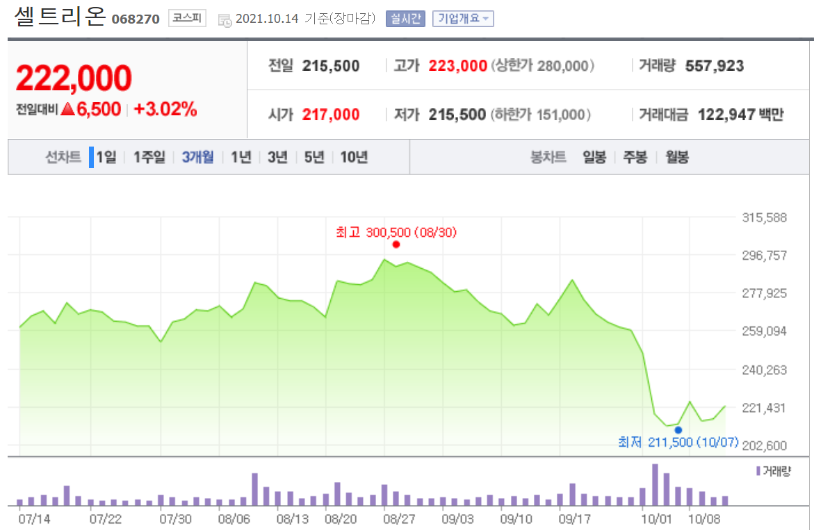 | 셀트리온 주식 주가 전망 | 지금이 저점은 아닐까? (0) | 2021.10.16 |