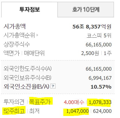 목표주가도 1,078,333원 백만원이 넘게 가리라고 보고 있다.