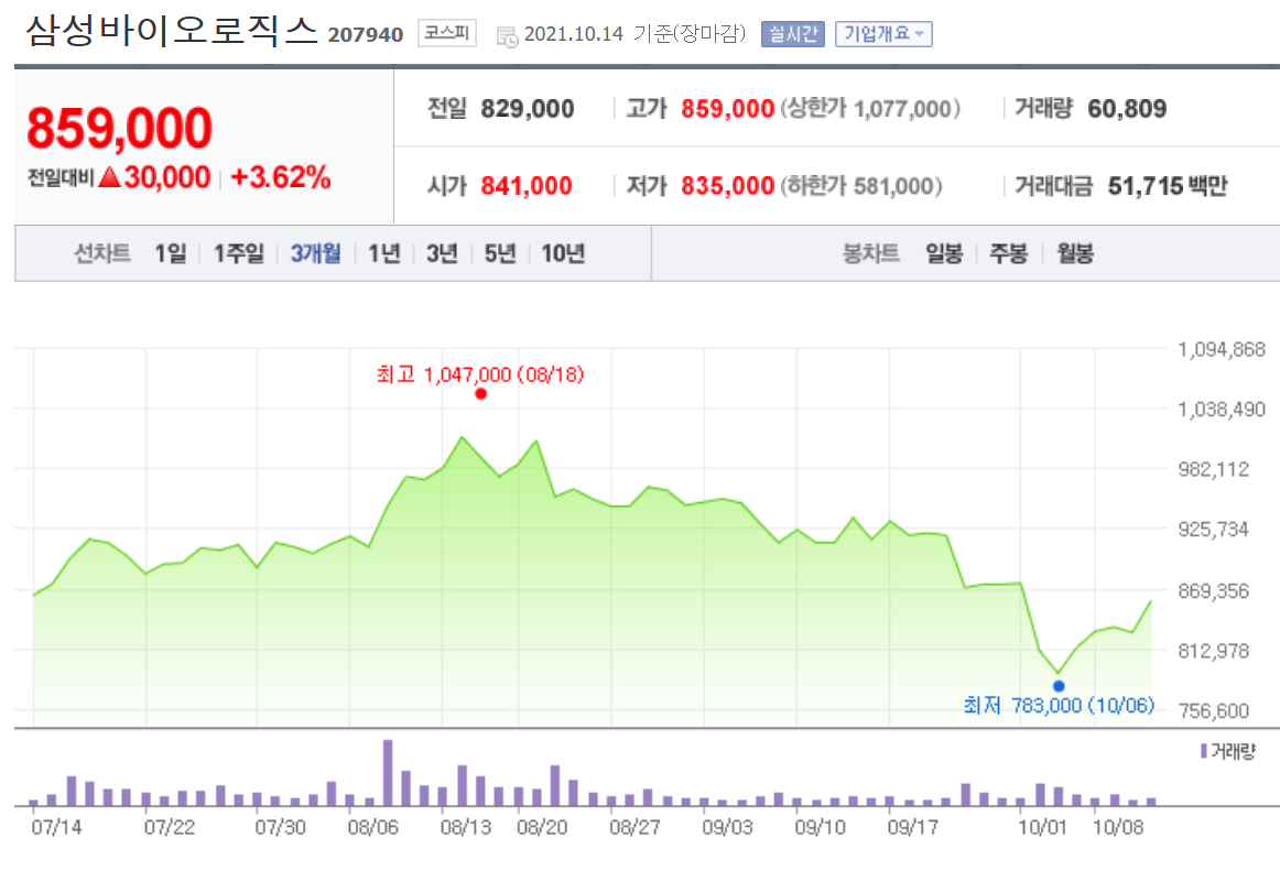 삼성바이오로직스 주가의 단점은 음 너무 비싸다는 점 정도랄까?