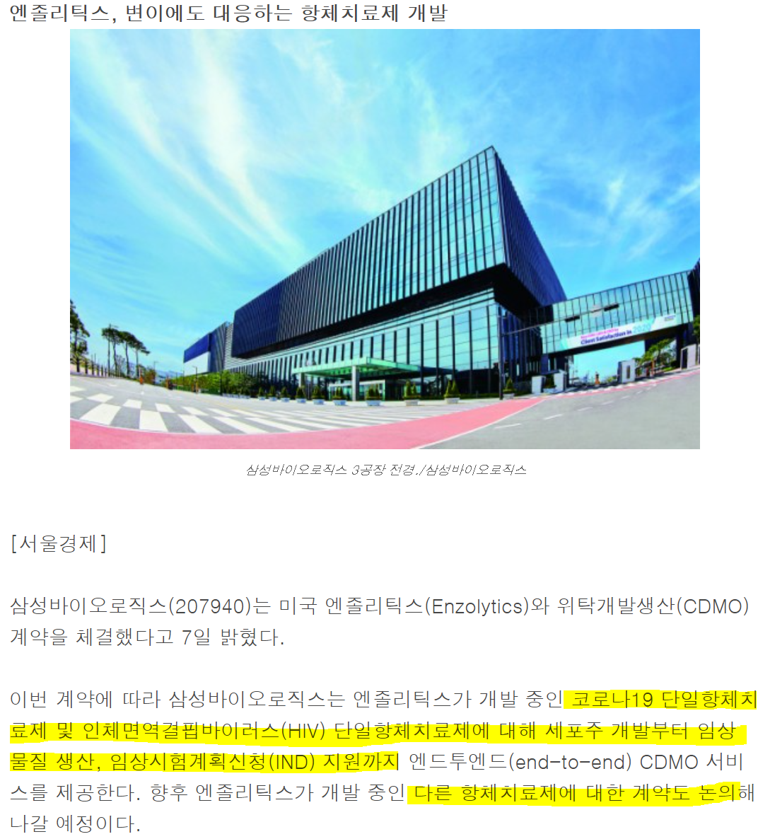 최근 삼성바이오로직스 주요 사업은 코로나 19 항체치료제 CDMO 와 많은 부분 관련이 있어보인다.