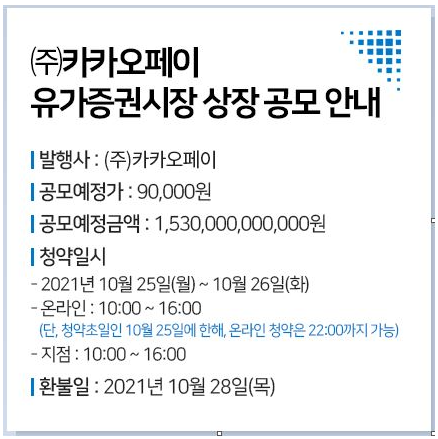 먼저 카카오페이 공모주 청약일정은 10/25-26 월요일 화요일