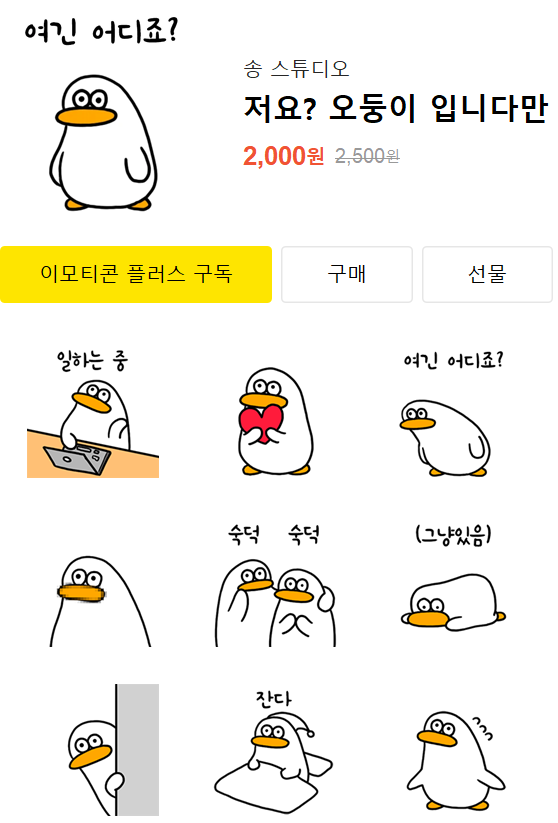 카카오 이모티콘 가격은 대부분 2500원인데 (필자는 아이폰이다.)