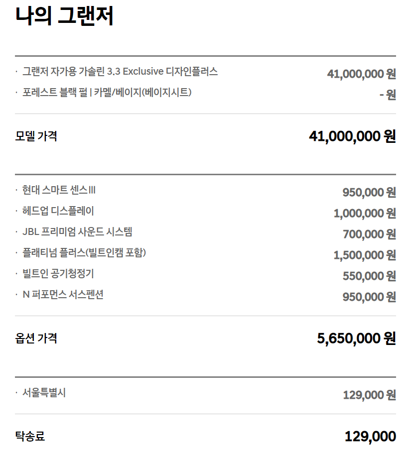 현대 더뉴그랜저는 46,779,000원 정도 나오더라.