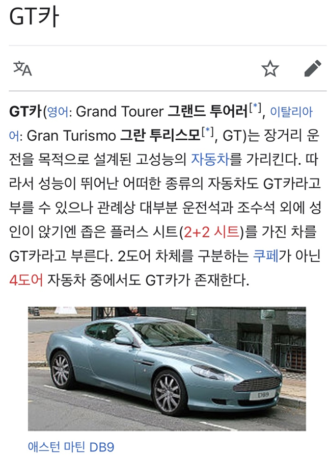 장거리 운전을 목적으로 설계된 고성능 차(GT)