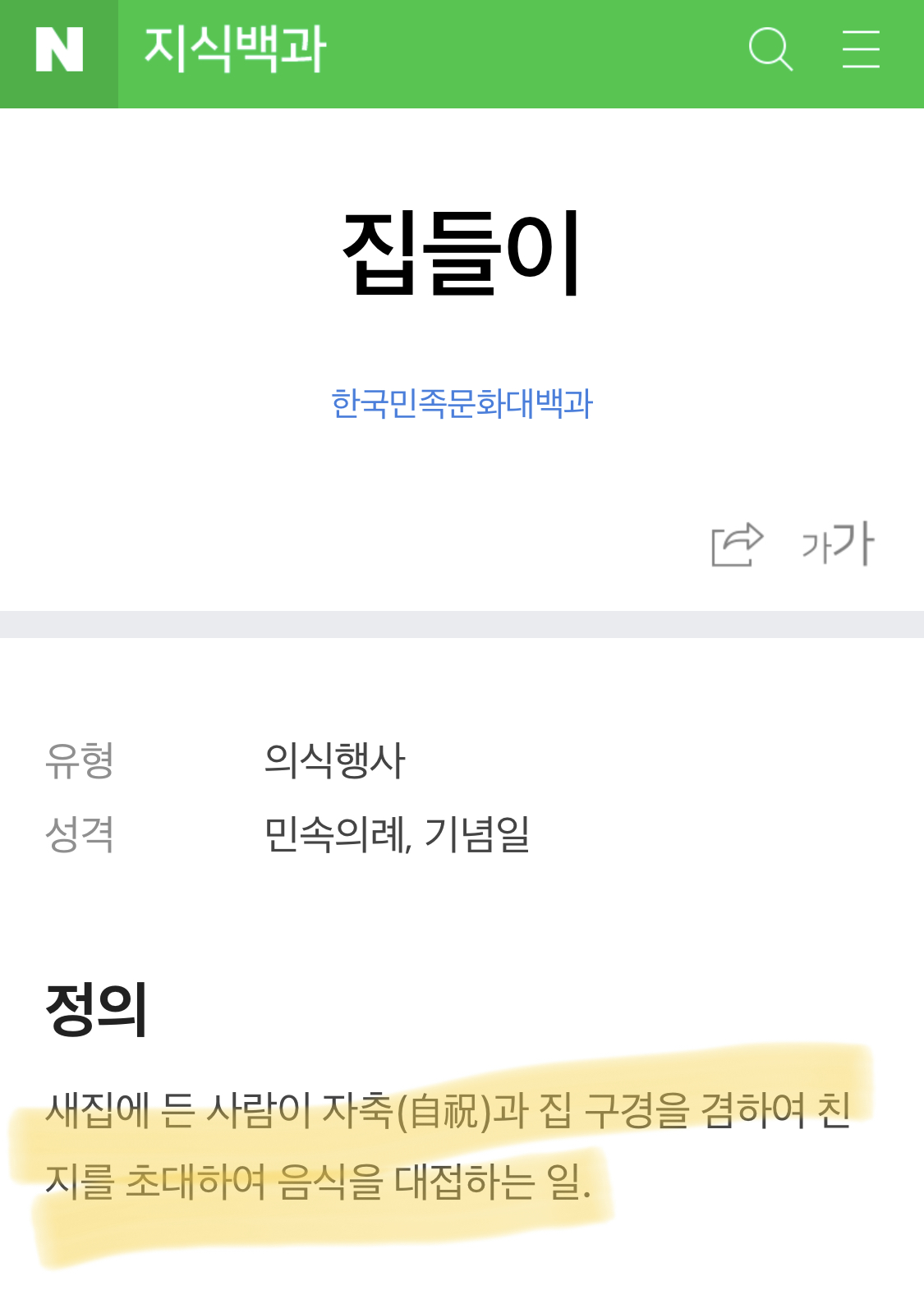 휴...ㅎㅎㅎ 집들이 정의나 찾아볼까?