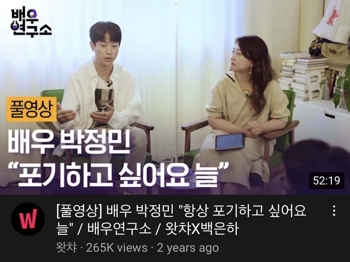 이번 유트브 배우연구소 박정민편도 보고 생각할 부분