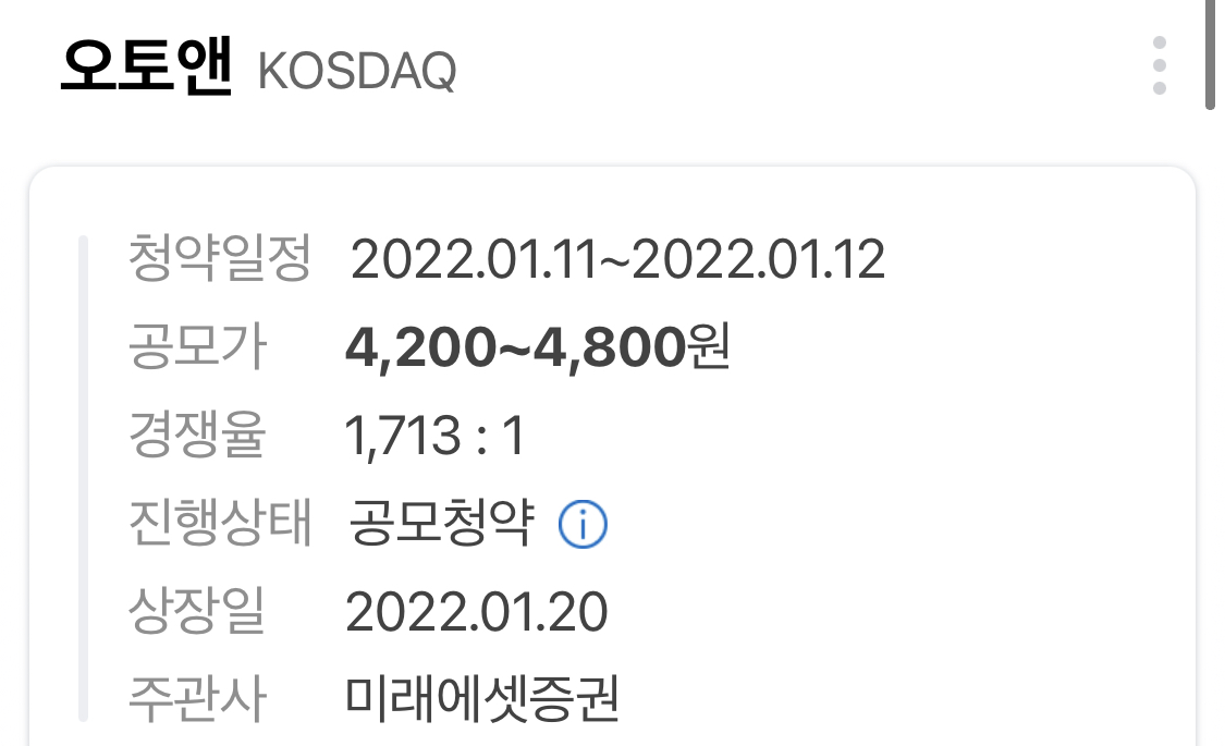 2022 첫 공모주 청약 | 오토앤 공모주 청약