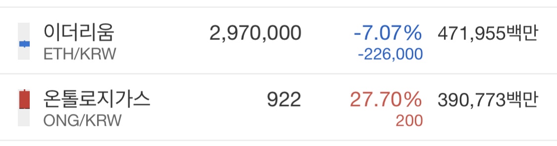 즉 온톨로지가스와 이더리움 차트를