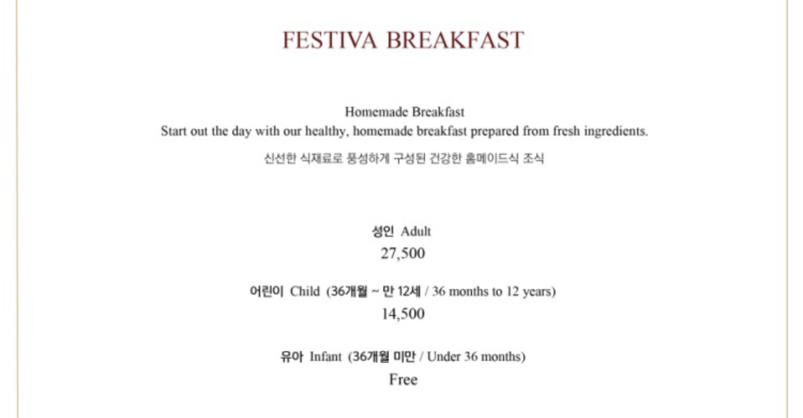 대략 런치 조식 인당 3-4만원 정도 예상하면 될 듯