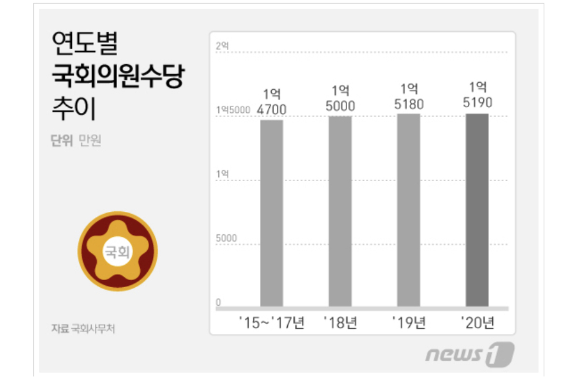 국회의원이 1년간 받는 돈은 약 1억 5000만원 상당