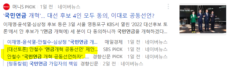 국민연금에 대해 두 기득정당을 향한 공격이 아닌