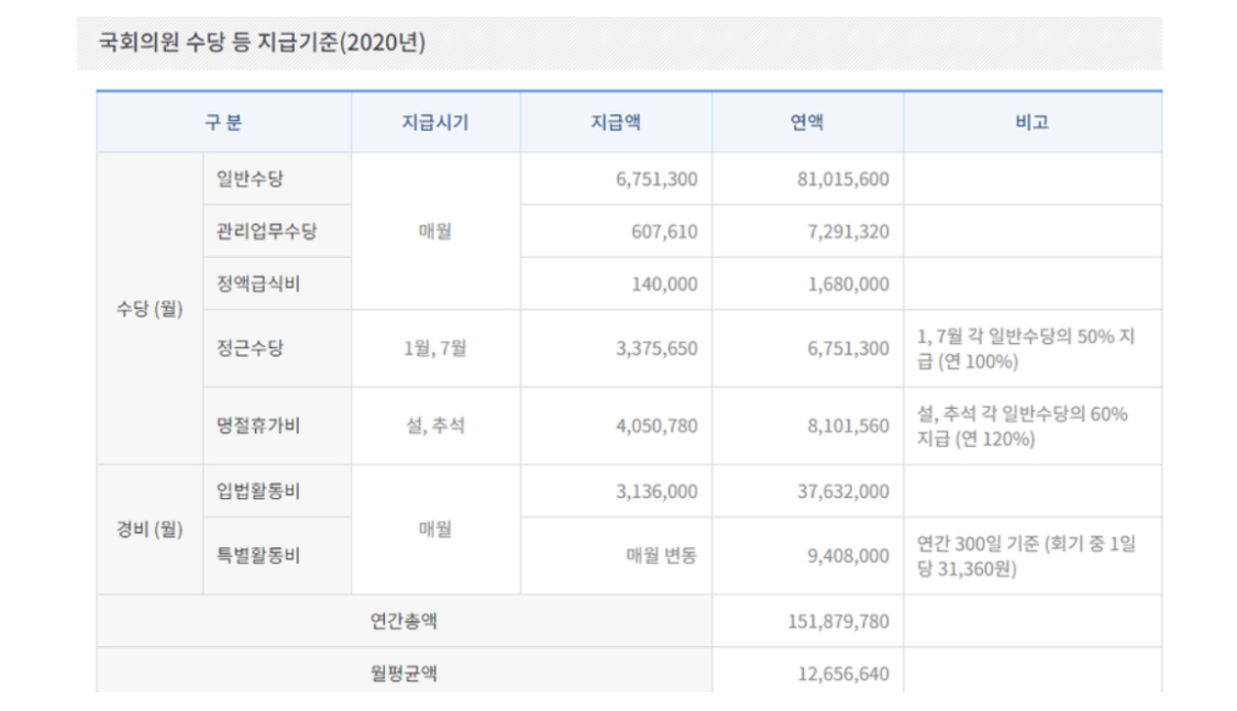국회의원 연봉, 월급에 대해서는