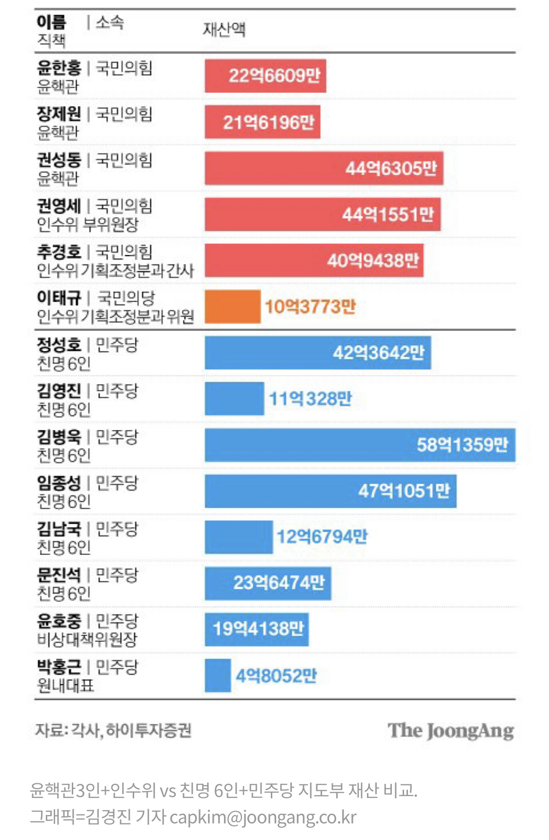 우연히 보게된 국민의 힘과 민주당원들 재산액