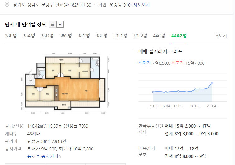 이 아파트도 대략적인 가격은 15억이 넘는 것 같네요.