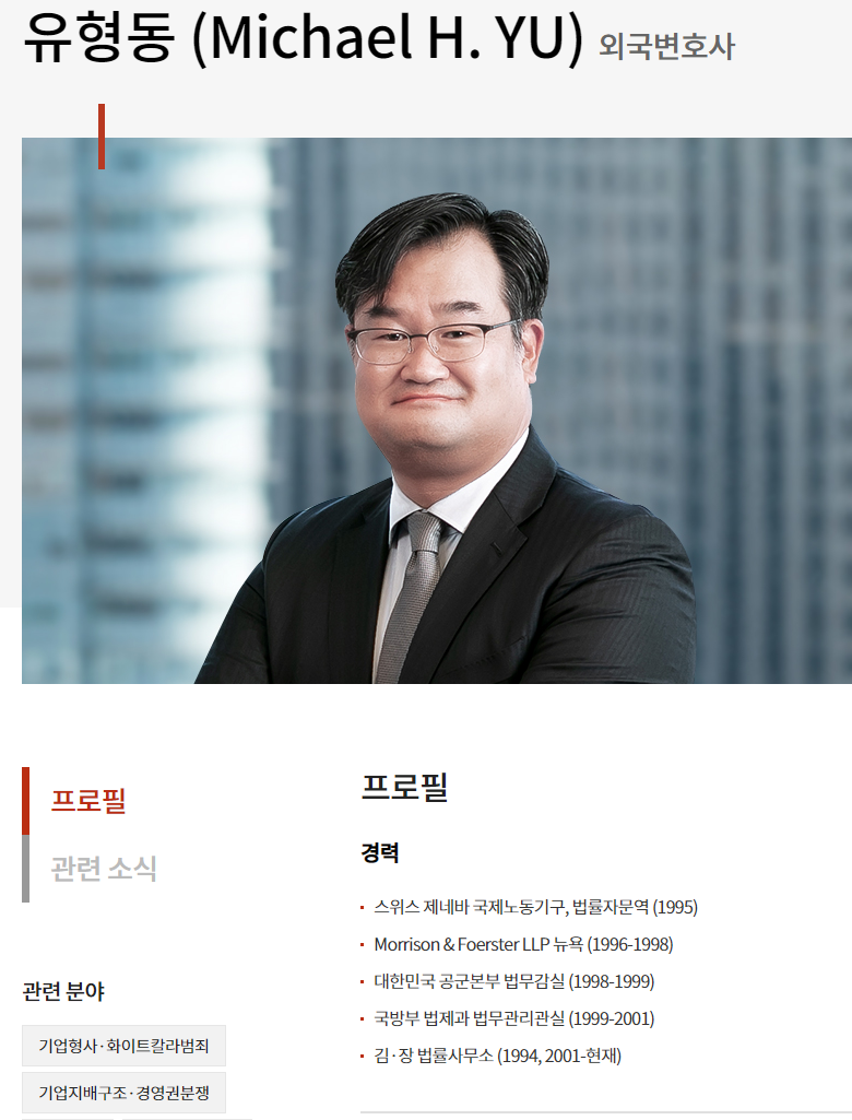 유형동씨 직업은 미국 변호사입니다.