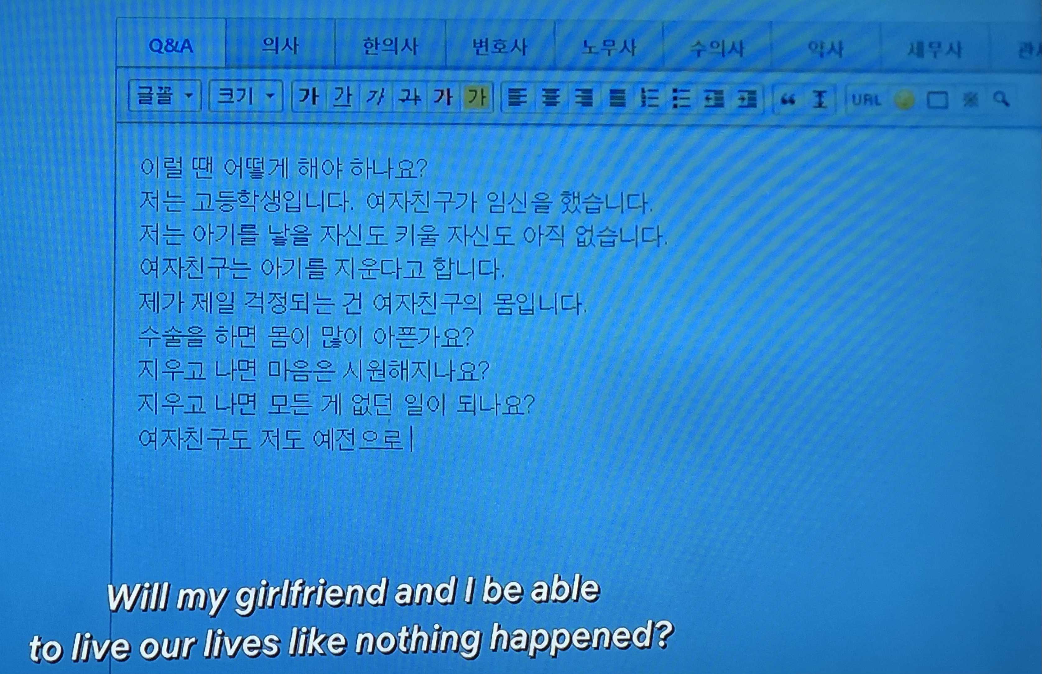 여자친구는 아기를 지운다고 합니다.