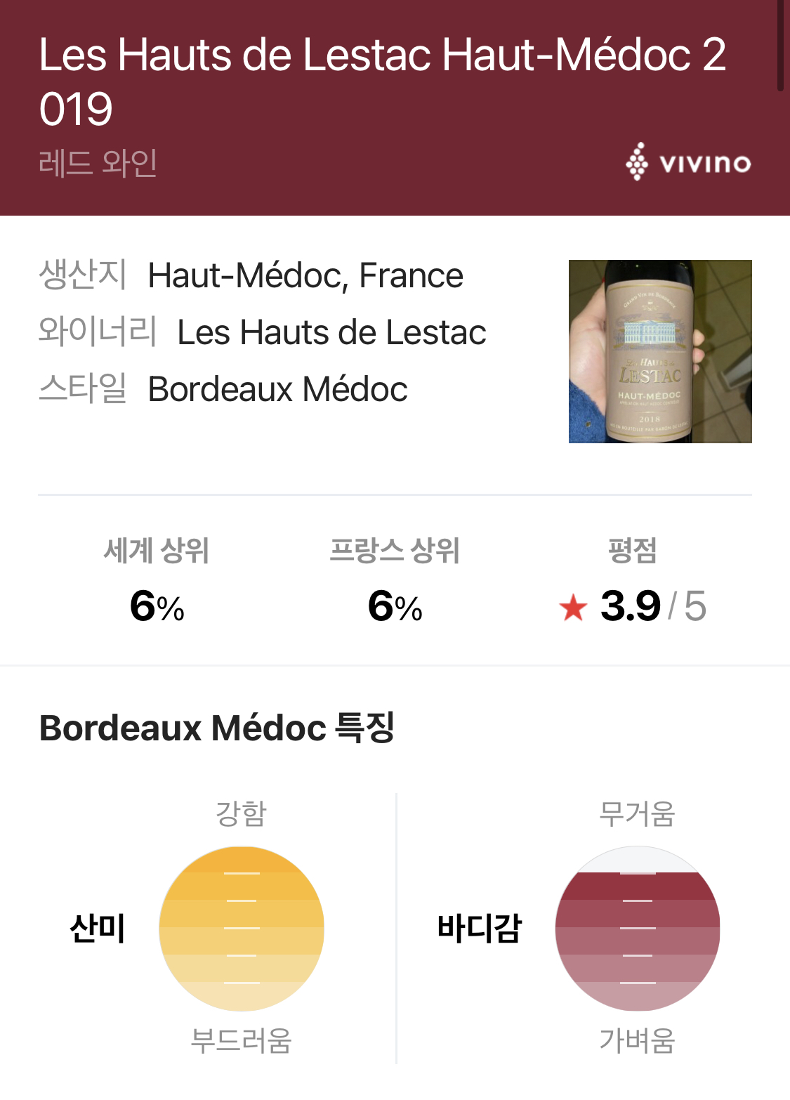 레오드 레스탁 메독 2019 비비노 평점