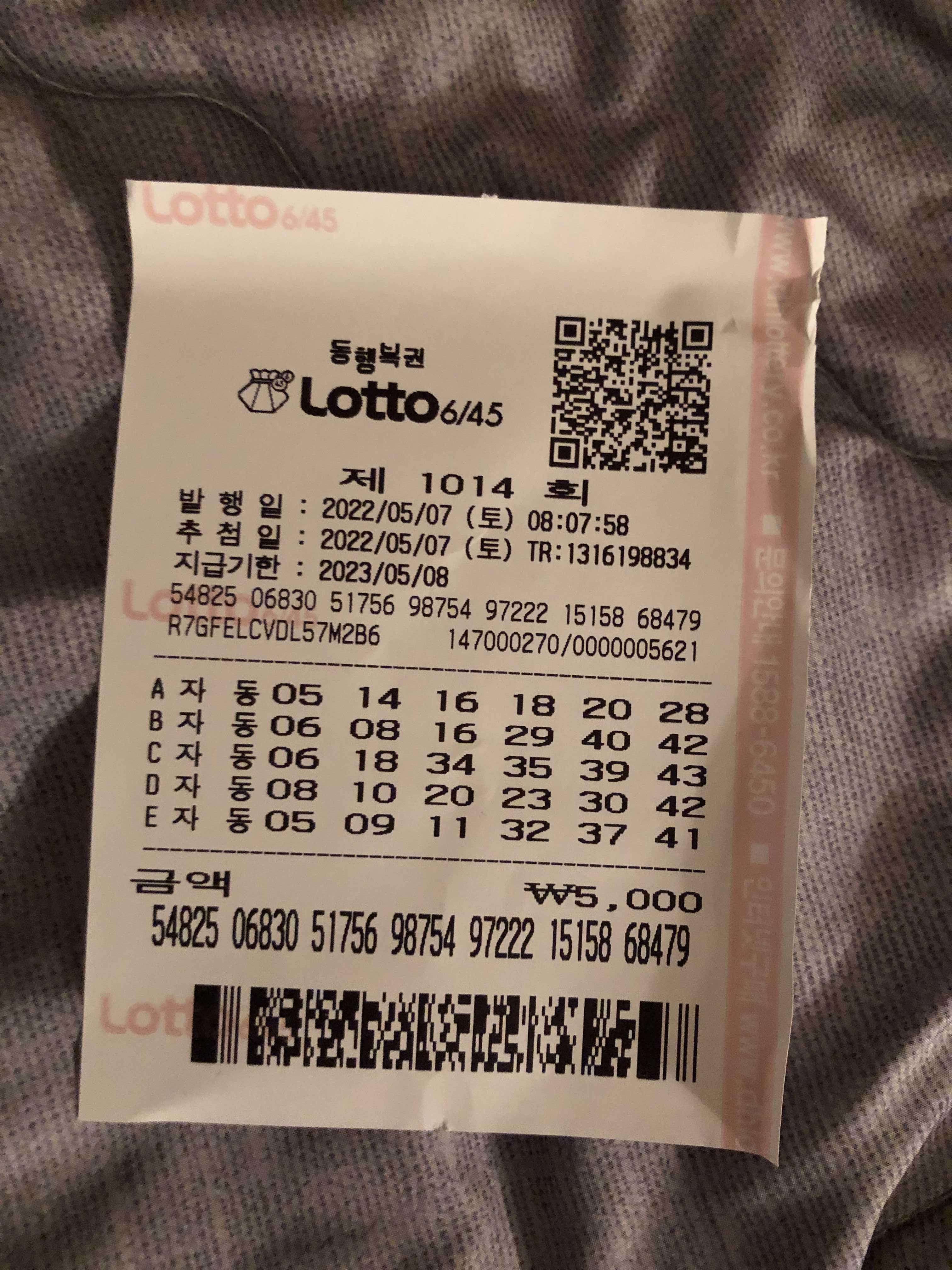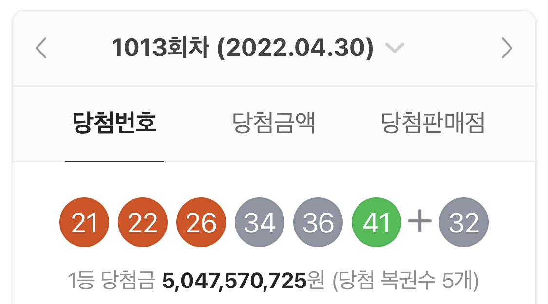지난주는 5명 당첨복권 나왓는데