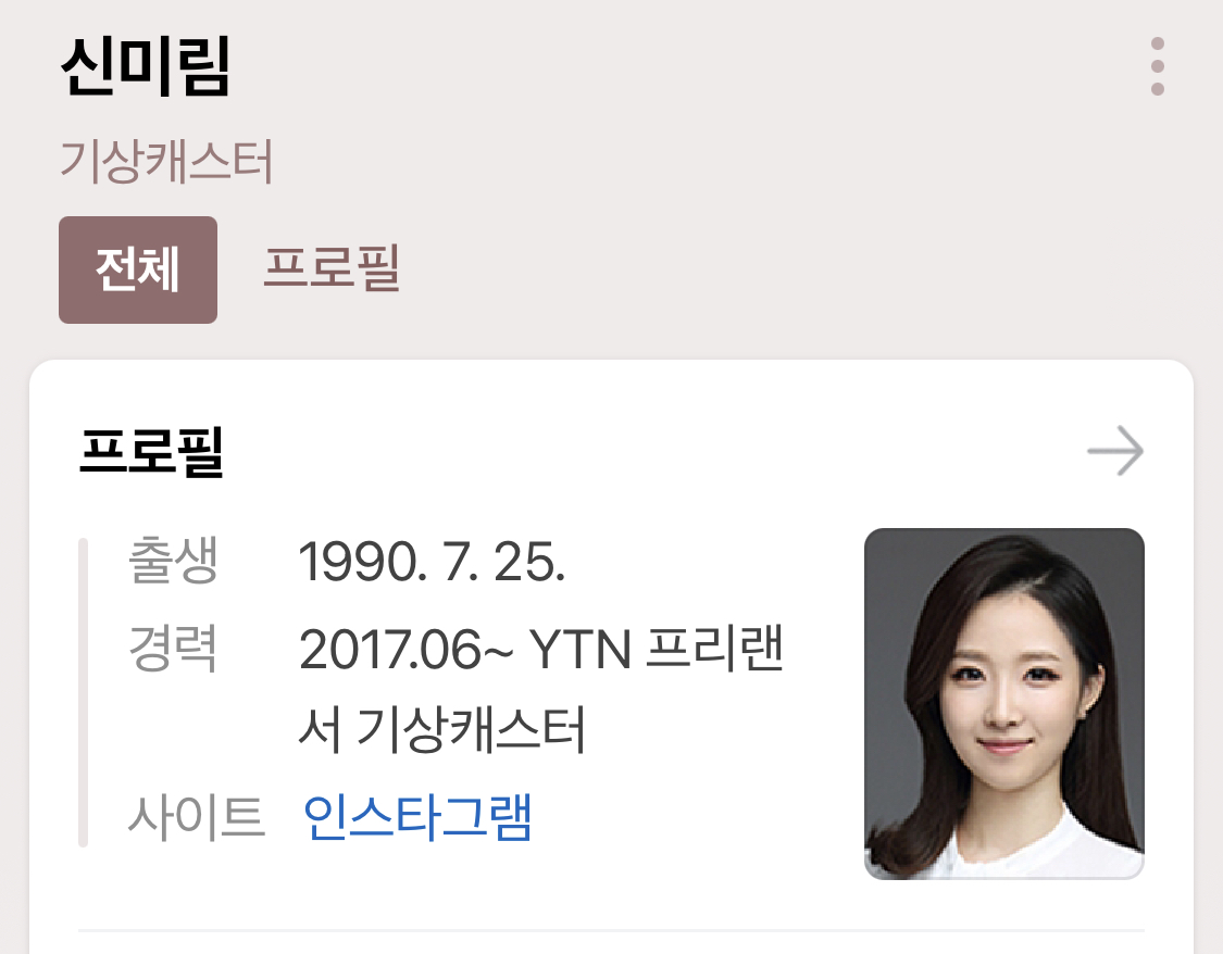 대부분의 사진은 YTN 기상캐스터 신미림 인스타에서 가져와보았다. 인스타에 일상이 많이 있으시다.