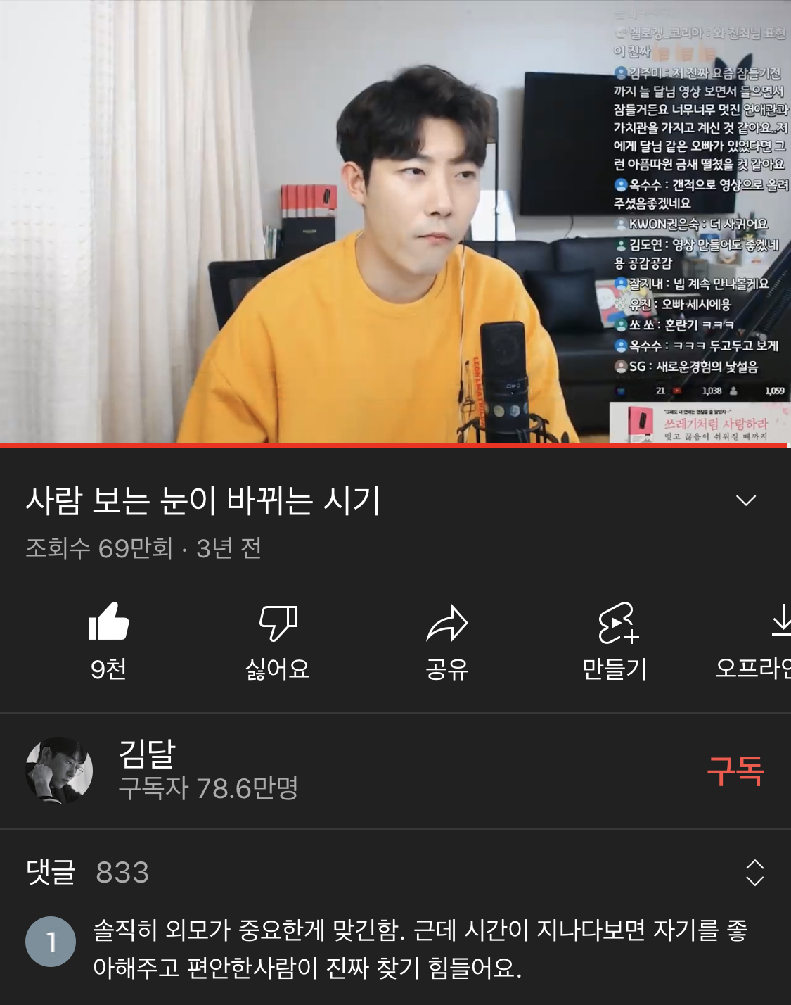 김달 유튜브 ‘사람보는 눈이 바뀌는 시기’ 컨텐츠에