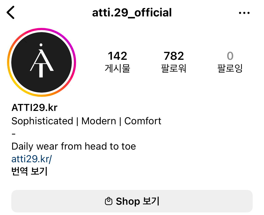 현재 개인브랜드(아래 atti.29)를 운영 중인데 운영한지는 한 일년 정도되었다고 해요.