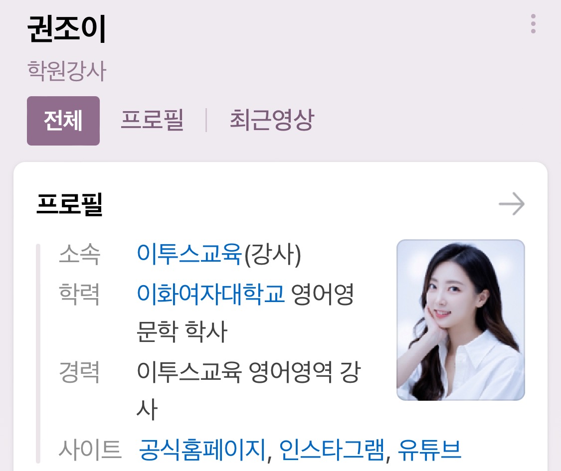 권조이(31) - 강남 자가 보유, 이투스 수능 강사