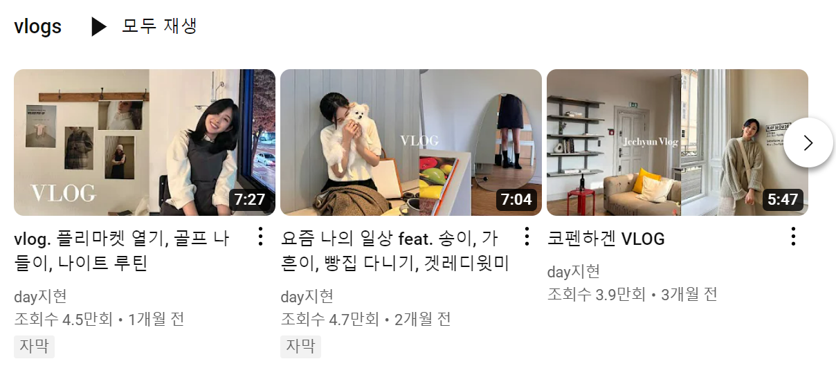 매달 본인이 좋아하는 삶을 일기처럼 유튜브 vlog로 남기나 봅니다.