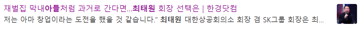 그리고 최태원 회장 아들 순으로 이어가 보겠습니다.
