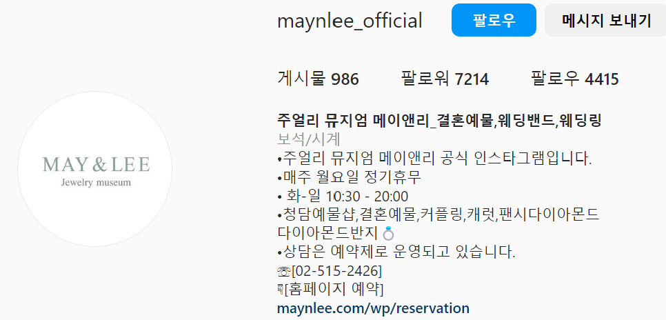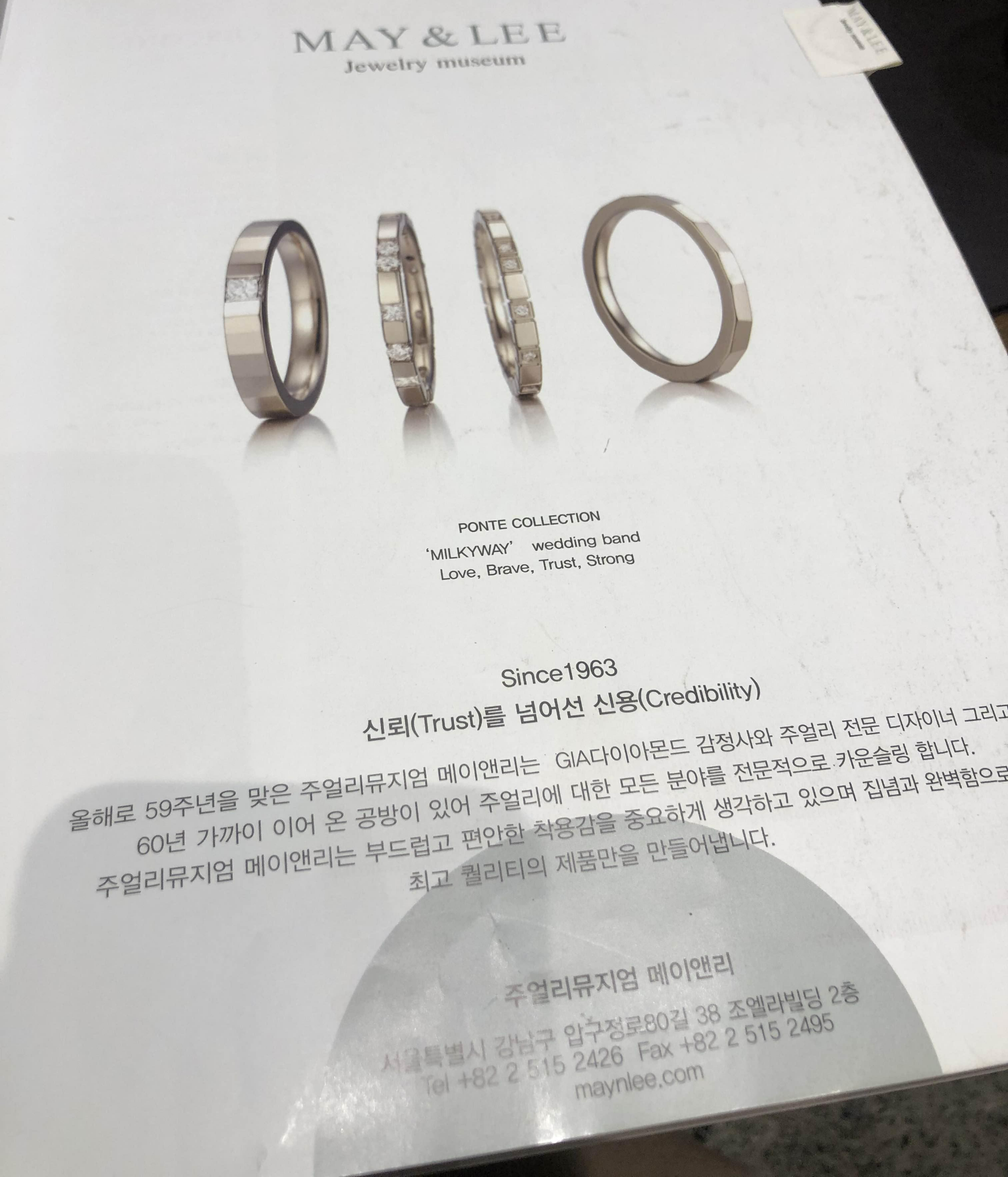 오늘은 청담 May&Lee 메이앤리라는 웨딩링, 커플링, 결혼반지 전문 귀금속 업체를 소개합니다.