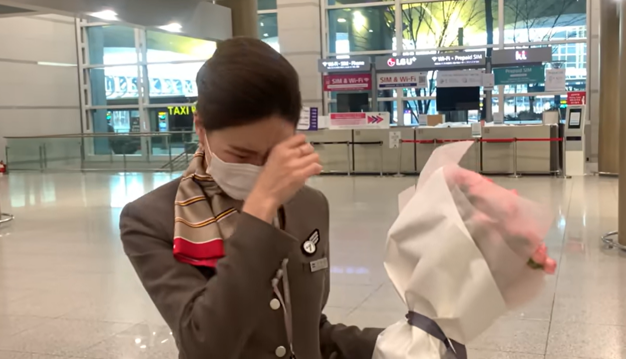 밍동은 전직 아시아나항공 승무원 출신입니다.