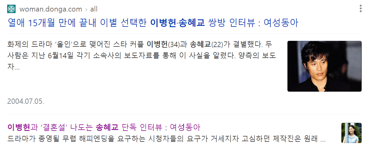 이때 송혜교는 22살, 이병헌은 34살이었었다.